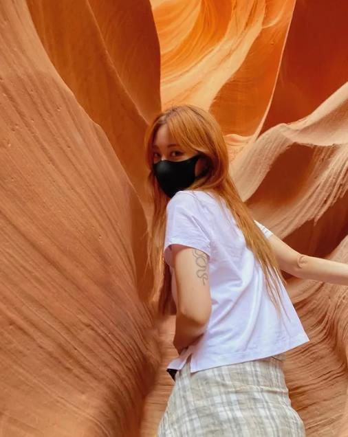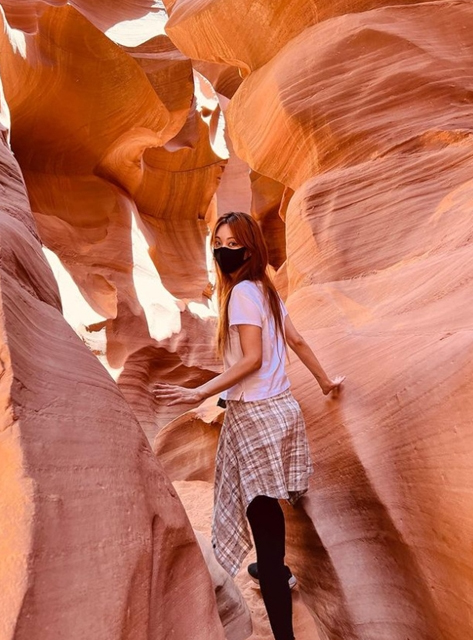 사진 속 한예슬은 엄청난 자연 경관을 이루고 있는 협곡 사이를 올라타 포즈를 취하는 한편, 사암 벽을 손으로 만지는가 하면 주위 시선은 개의치 않은 듯 자유분방한 분위기를 자아냈습니다.