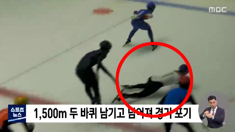 곽윤기는 이날 경기 중반까지 치열한 선두싸움으로 1위와 경쟁을 벌이며 2바퀴를 남겨둔 가운데 스케이트 날이 얼음에 걸려 앞으로 크게 넘어졌고 몸에 큰 충격을 받았습니다.