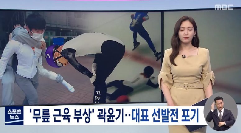 5일 한 매체의 보도에 따르면 곽윤기는 지난 4일 태릉 실내 빙상장에서 열린 '2022-23 시즌 쇼트트랙 국가대표 1차 선발 대회' 첫날 1500m 준준결승전에서 경기 도중 넘어지며 부상을 당했습니다.