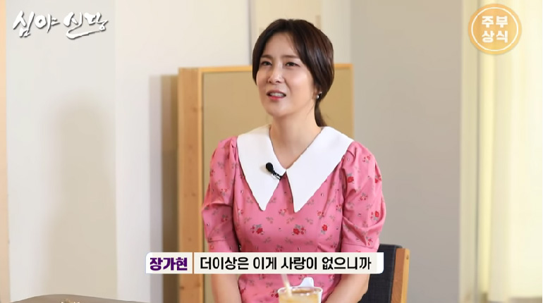 장가현은 "절대 이혼은 안 하고 싶었는데 도저히 더 이상은 사랑이 없으니까 내가 아닌 나로 살 수 없었다" 며 이혼 사유를 언급했습니다.