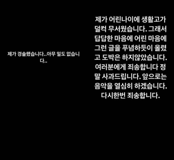 <최하민 인스타그램 사과>