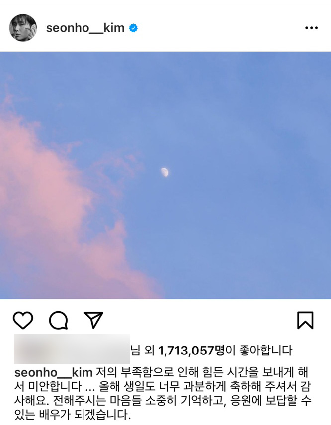 김선호는 7일 밤 자신의 인스타그램에 "저의 부족함으로 인해 힘든 시간을 보내게 해서 미안"이라면서 운을 뗐습니다.