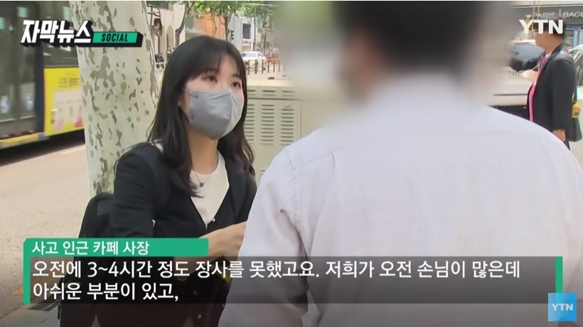 사고 인근 카페 사장은 "오전 3~4시간 정도 장사를 못했다"며 "냉장고, 냉동고 등이 다 정전이 되는 바람에 그 안에 있는 것들이 피해를 입을까봐"라며 우려를 드러냈습니다.