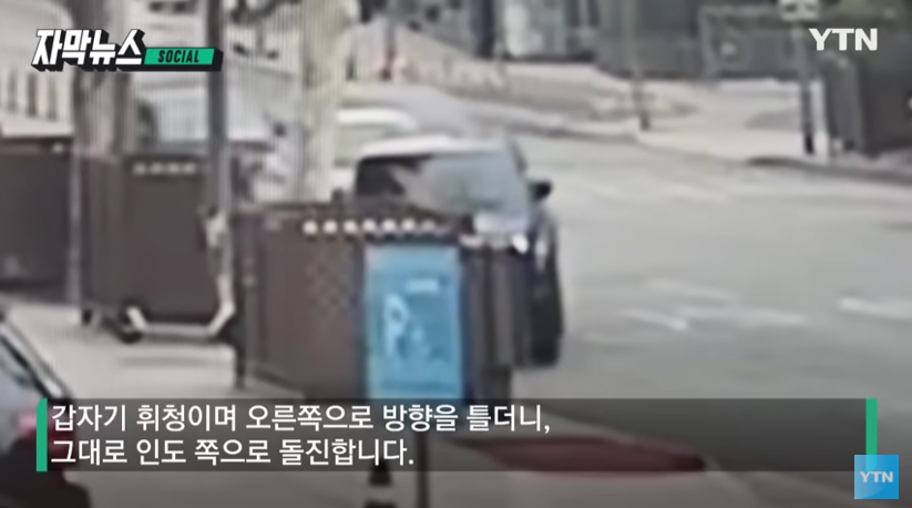 한 매체에서 공개한 CCTV에서 김새론이 운전한 검은색 SUV 차량은 비틀거리며 골목을 빠져나와 우회전하더니 그대로 인도 쪽으로 돌진해 변압기를 들이받았습니다.